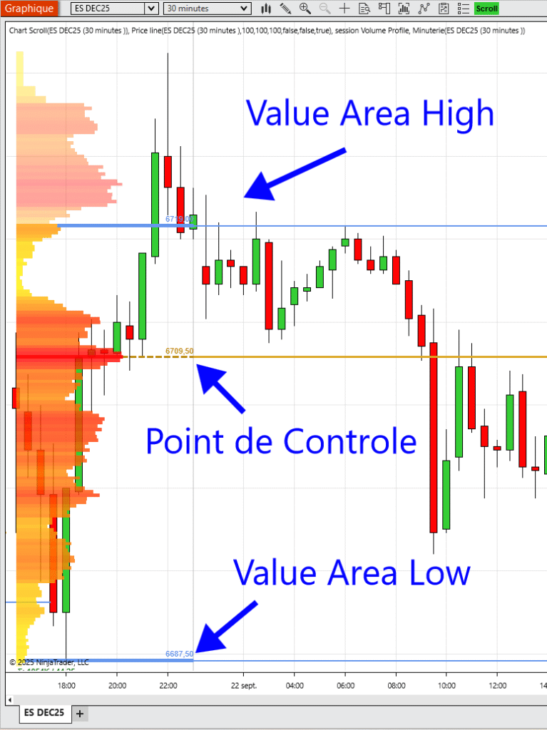 Grâce au TPO, le trader accède à une vision claire des zones de valeur, des niveaux clés d’équilibre et des déséquilibres qui génèrent les meilleures opportunités de trading.